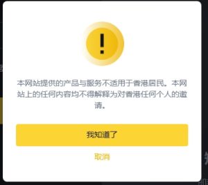 注意:香港IP或者一些地区打开币安官网会有提示 “本网站提供的产品与服务不适用于香港居民。本网站上的任何内容均不得解释为对香港任何个人的邀请。” 直接点我知道了。(建议不要使用美国,新加坡这些地方的IP可能会有限制)
