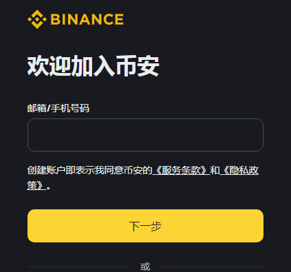打开币安注册链接:(点此打开)