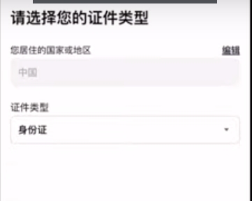 第四、完成上面步骤后就可以登陆欧易APP了,系统会要求进行身份认证。默认的居住地区是中国,并提供身份证和护照两种证件类型选择。