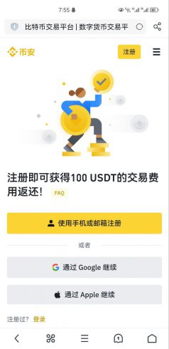 现在注册币安可以获得100USDT的交易费返还哦,抓紧吧。