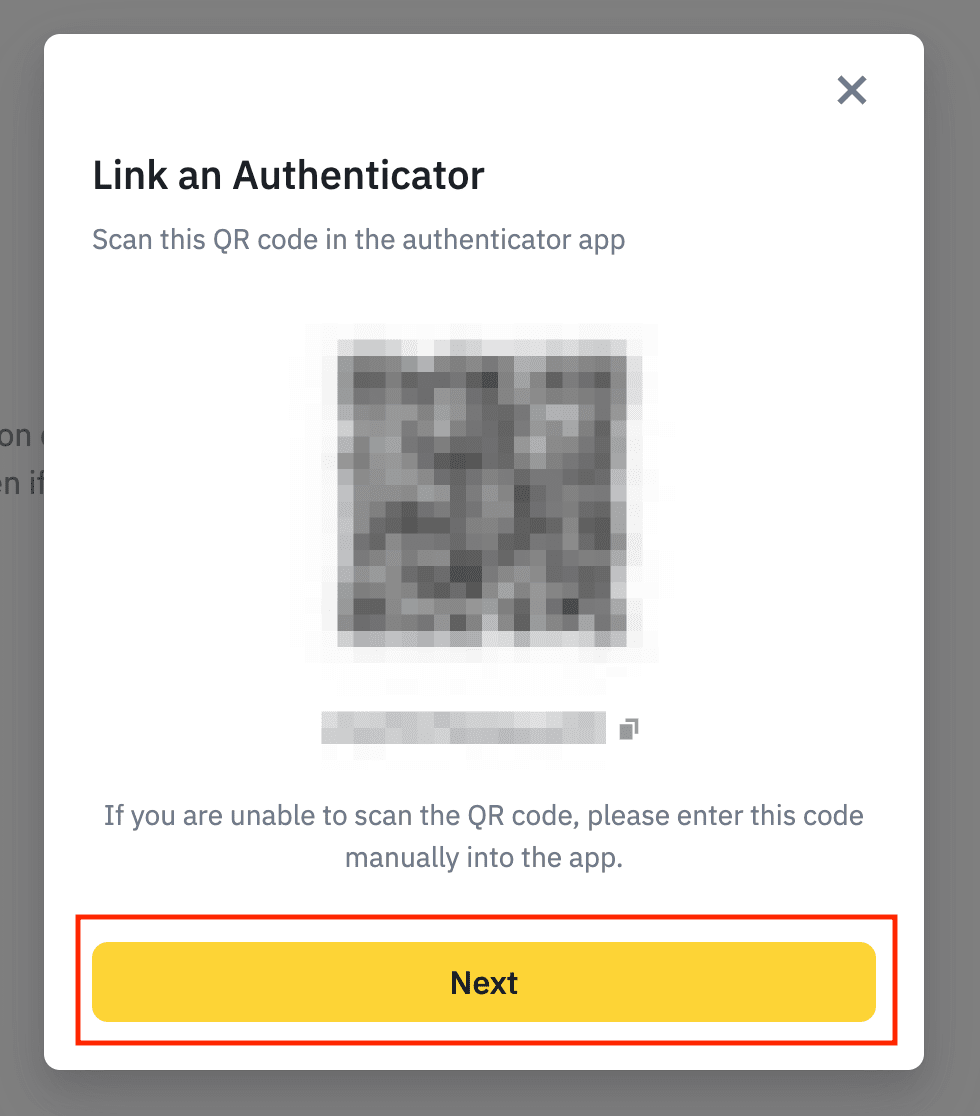 4. 在这一步,系统会显示一个二维码和设置密钥。在您的谷歌验证器设置完成之前,请不要点击“下一步”。打开您的谷歌验证器App,点击“+”按钮,然后选择“扫描二维码”以扫描显示的二维码。如果您无法扫描二维码,请点击“输入设置密钥”并手动输入设置密钥码。这样做后,您的谷歌验证器中将会添加一个名为“Binance.com”的新账户。