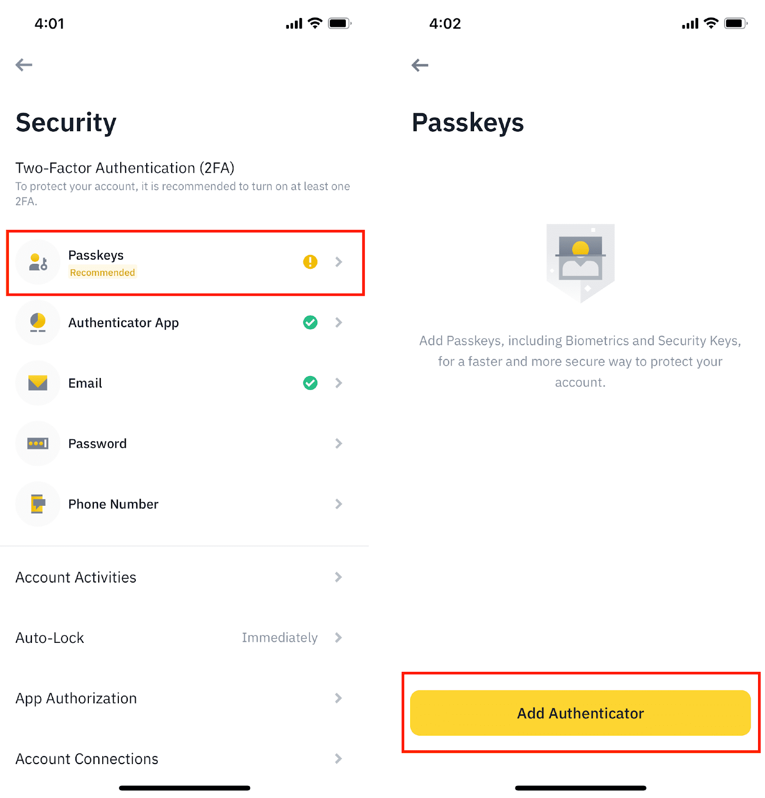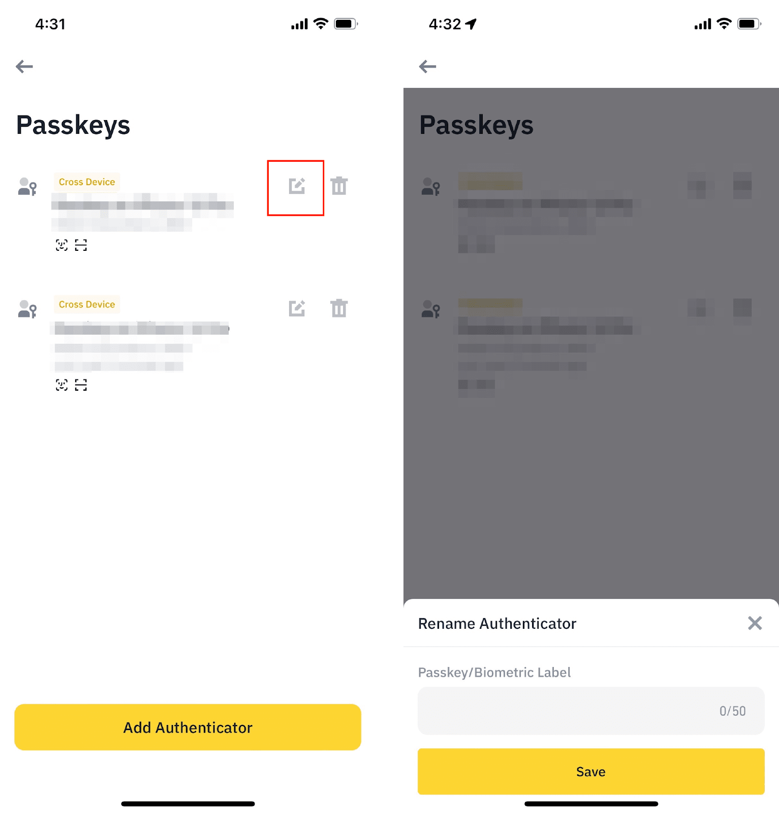 匿名 提问: 2024-03-092024-03-09T04:24:00+00:00 2024-03-09T04:24:00+00:00位于: 加密货币 币安通行密钥怎么用,如何创建密匙 币安交易所:点击注册币安 币安通行密钥怎么用,如何创建密匙给个详细的图文教程 谢谢。 币安 1 回复 投票 最老的 最近 最佳答案 匿名 2024-03-09T04:26:27+00:00添加了答案 在4:26 am处的答案2024-03-09 币安账户的绝大多数功能都支持使用密钥进行身份验证,而且可以在各种设备上进行操作。一旦添加了密钥,您就可以在所有关联的设备上使用它进行双重身份验证。相较于仅使用密码,使用密钥验证更加安全、快捷,有助于保护您的账户安全。 如何在币安App上添加密钥? 目前,密钥功能仅限于币安App 2.60及以上版本,并要求使用设备的系统配置不低于iOS 16或安卓OS 9。 您可以使用以下方式之一来添加密钥:iCloud钥匙串、USB安全密钥、手机的锁屏密码或PIN码,或者使用其他设备(如另一台手机)。 1. 登录币安App,在底部导航栏中选择【账户】,然后点击顶部的个人资料部分,接着前往【账户安全】。 2. 点击【通行密钥】-【添加验证器】。然后使用现有的通行密钥或双重身份验证设备进行验证。 3.点击【继续】。 4. 在这一步会弹出一个窗口。请确认您的币安账户邮箱地址,然后点击【继续】并选择验证方式以创建通行密钥。 5. 密钥已成功添加至您的币安账户。 下面是在电脑币安官网操作添加密钥 您可以使用支持此功能的浏览器,如最新版本的Chrome浏览器,向您的币安账户添加密钥。添加过程与在币安App上的操作类似。您可以使用电脑密码或生物识别验证(如指纹ID)、USB安全密钥或其他设备(如您的手机)来完成。 1. 登录您的币安账户,在【个人资料】图标上悬停鼠标,然后点击【账户】。 2. 前往【账户安全】,然后点击【通行密钥】旁边的【管理】。 3.点击【添加新验证器】。 4.点击【继续】并完成双重身份验证。 6. 您已成功将通行密钥添加至您的币安账户。请注意,创建的通行密钥仅保存在当前设备上。 接下来是如何删除密钥 如果您使用的是币安App: 您可以点击密钥旁边的【编辑】图标,自定义密钥的名称。 如需删除通行密钥,请点击【删除】图标,并使用通行密钥或双重身份验证完成验证请求。 如果您使用的是币安官网(Chrome浏览器): 点击密钥旁边的【编辑】或【删除】,进行重命名或删除操作。 请注意,在Chrome上删除通行密钥时,您必须先使用该通行密钥验证此项请求。例如,如要删除USB安全通行密钥,您需将密钥插入电脑,才能验证此项请求。 留下答案取消回复