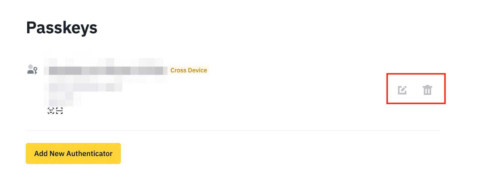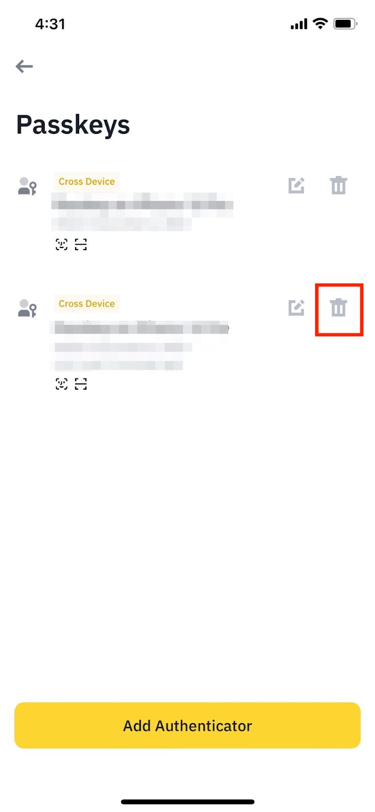 如需删除通行密钥,请点击【删除】图标,并使用通行密钥或双重身份验证完成验证请求。