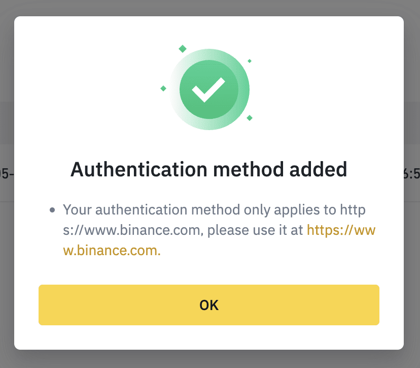 5. 密钥已成功添加至您的币安账户。