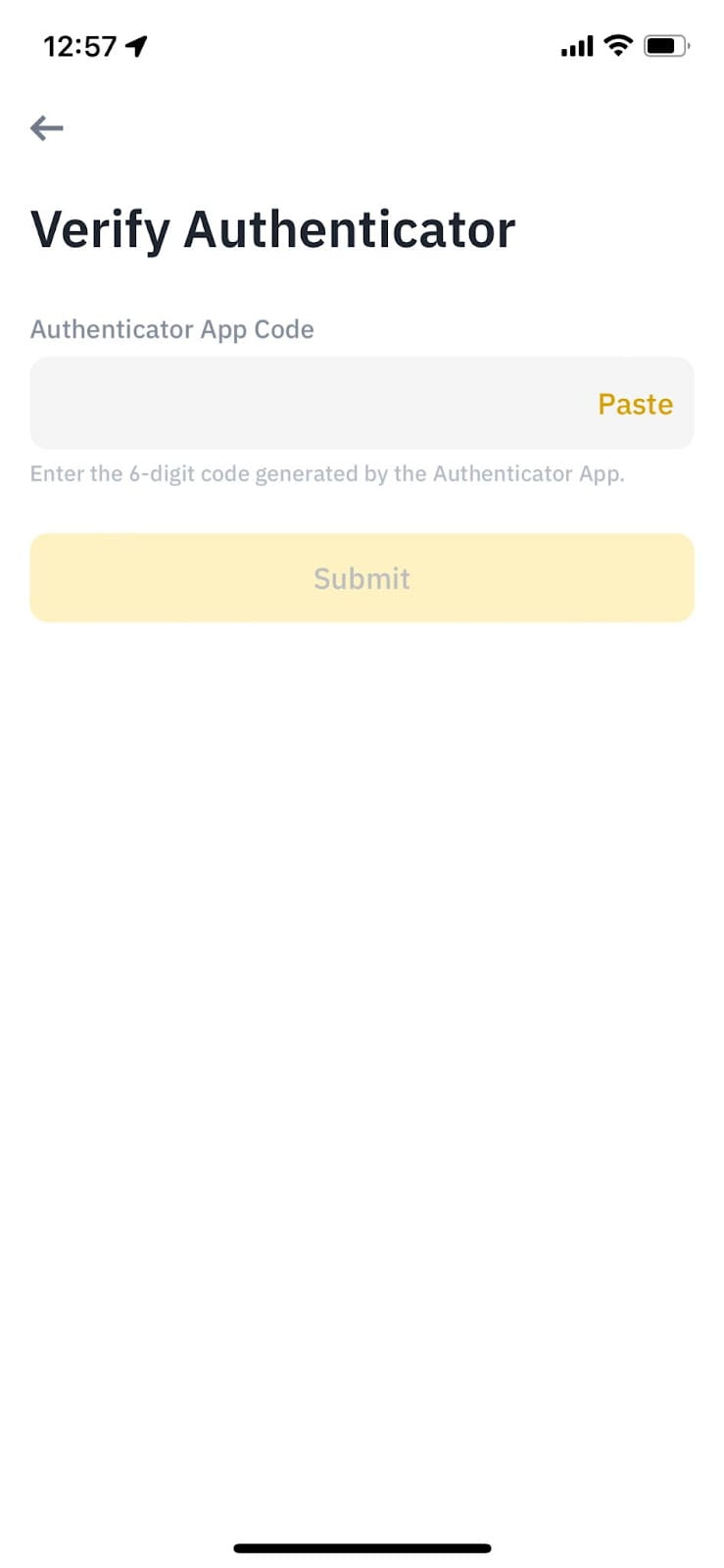 5. 输入由应用生成的6位验证码,以验证您的谷歌验证器。
